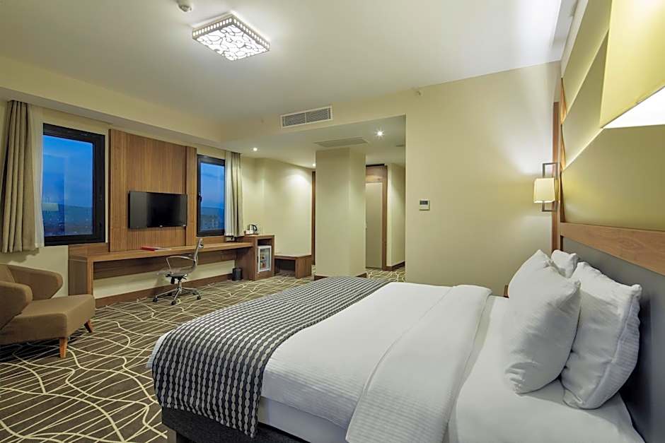 Featuring free toiletries and bathrobes, this twin room includes a private bathroom with a shower, a hairdryer and slippers. The spacious air-conditioned twin room features a TV with cable channels, soundproof walls, a mini-bar, a seating area as well as city views.
